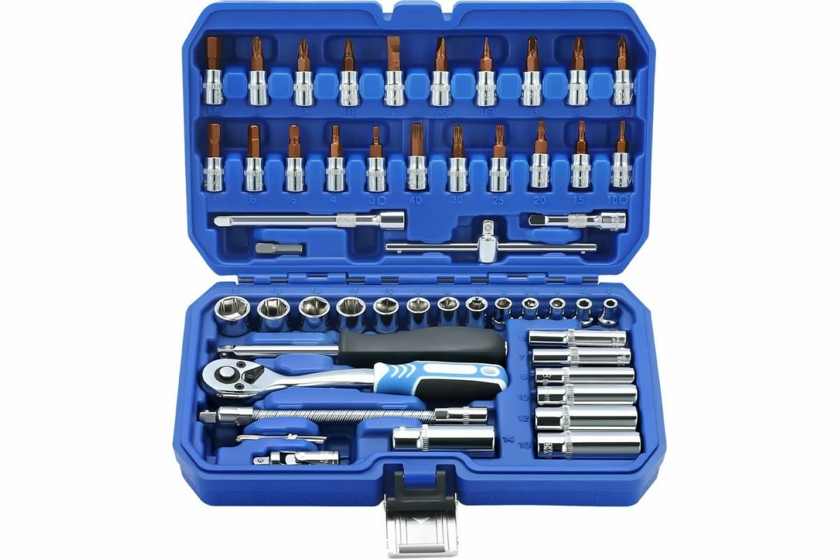 Набор инструментов 53 предмета 1/4" трещотка 72 зуба GOODKING B-10053 Набор инструментов для авто, для дома