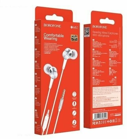 Проводные наушники BOROFONE BM52 Revering, Jack 3.5mm, 1.2 м, серебристый
