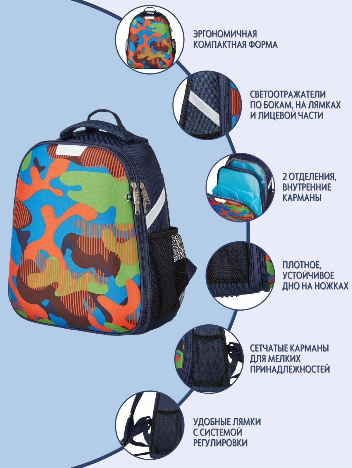 Ранец Light Милитари цветной, 2 отд., 700гр