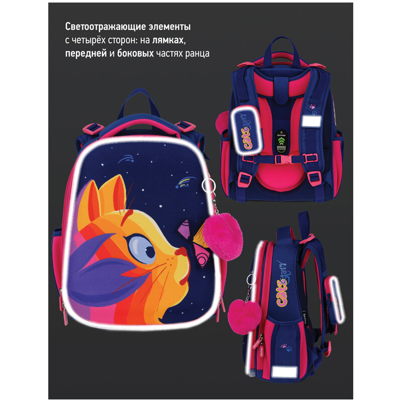 Ранец для девочки Berlingo ортопедический, Expert Surprised cat 37х28х16 см, анатомическая спинка (RU07102)