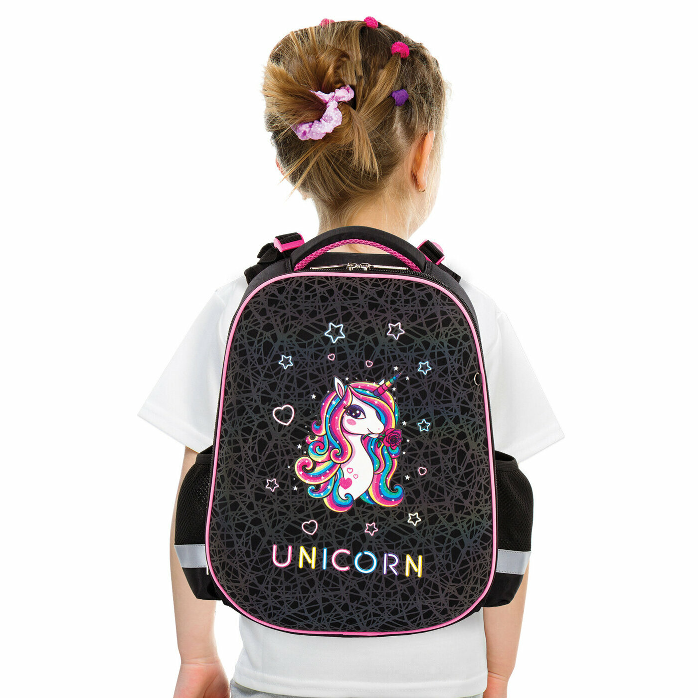 Купить Ранец для девочки Юнландия школьный, Extra, Rainbow unicorn, светящийся рисунок, 38х29х18 см (229932)