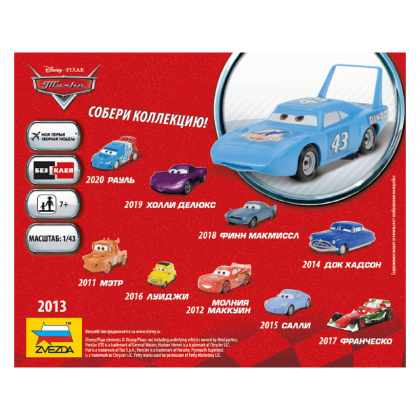 Сборная модель ZVEZDA "Тачки" Кинг арт.2013 1:43 интересное: