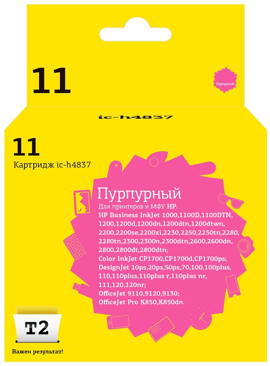 T2 C4837a Картридж 11 (ic-h4837) для HP Business InkJet 1200/2200/2600/2800/CP1700/Pro K850, пурпур .