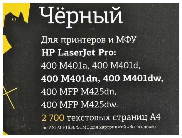 | Совместимые принтеры | HP LaserJetPro 400 M401aPro 400 M401dPro 400 M401dnPro 400 M401dwPro 400 MFP M425dnPro 400 MFP M425dw |