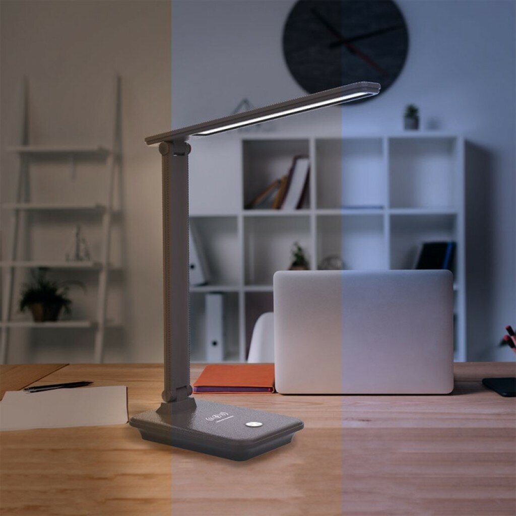 Настольный складной диммируемый светильник Feron 25W,3000-6000К, беспроводная зарядка и USB порт, бе .