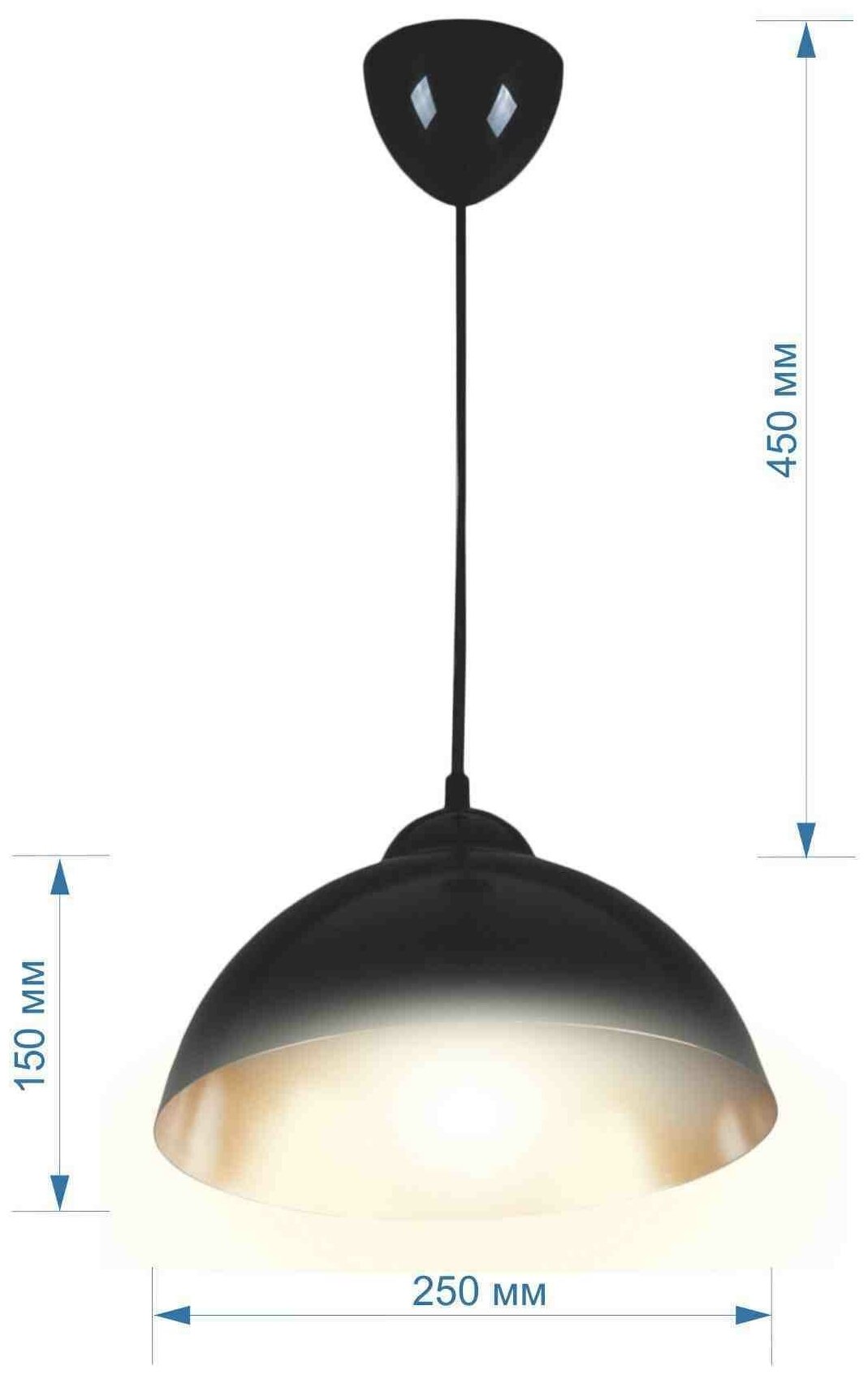 Декоративный подвесной светильник Пэрсо 14-47 с креплением на планку без ламп. Металлический круглый плафон с направлением света вниз и черным шнуром 45 см. Люстра потолочная с цоколем Е27 / 40Вт / IP20 / 220В / черно-золотой