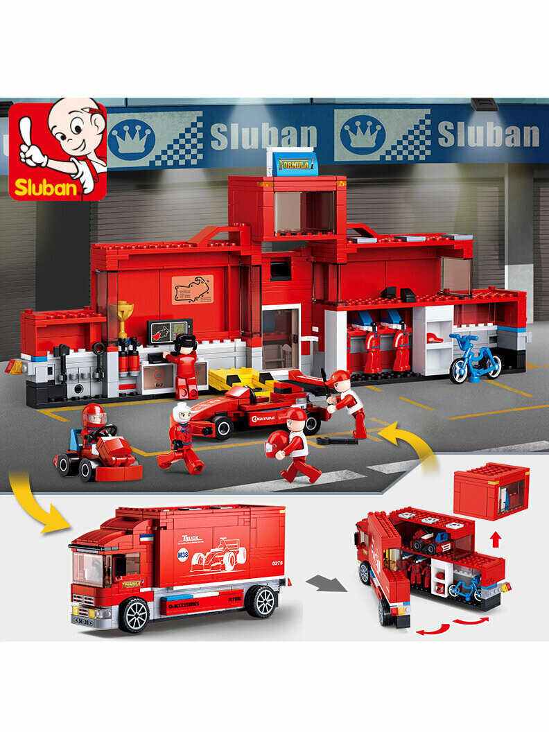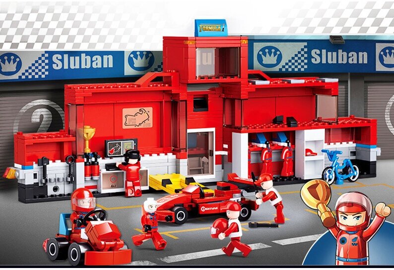 Конструктор Sluban Станция обслуживания гоночных авто, 557 дет. М38-В0375