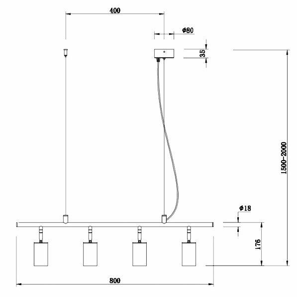 Подвесная люстра Crystal Lux Clt 015 CLT 015C4 L800 BL-GO, GU10, кол-во ламп:4шт., Черный