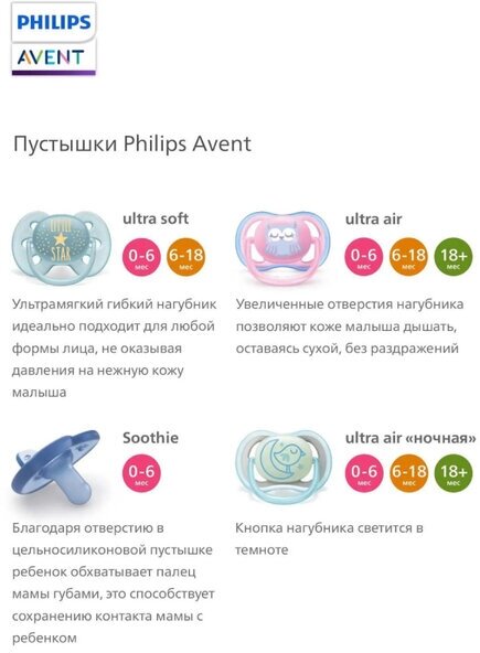 | Плюсы: | Отличные пустышки! Обычных за 100₽ хватало на один вечер, а Авент 1 шт уже недели 3 используем, все супер! Стоит своих денег однозначно!!! |