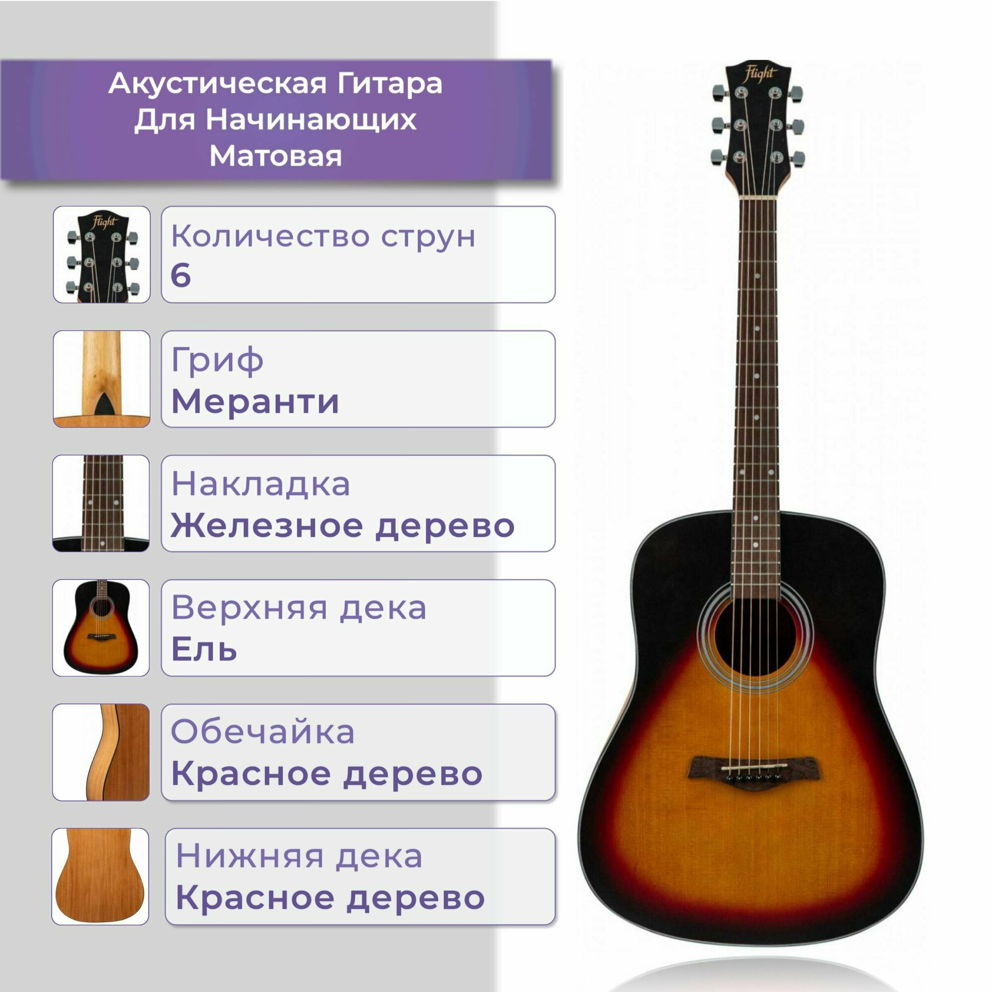 Ниже Вы можете прочитать отзывы на Гитара акустическая шестиструнная Flight D-175 SB, ознакомится с подробными характеристиками, посмотреть интересные обзоры и фотографии на Гитара акустическая шестиструнная Flight D-175 SB.