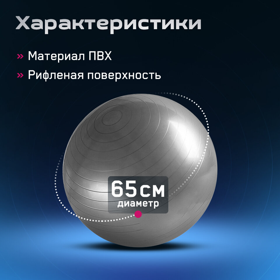 Купить Фитбол, мяч для фитнеса, надувной, 65 см, серый