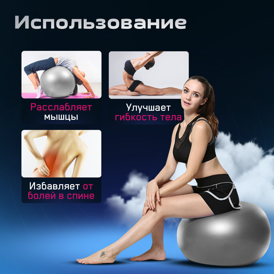 Фитбол, мяч для фитнеса, надувной, 65 см, серый интересное:
