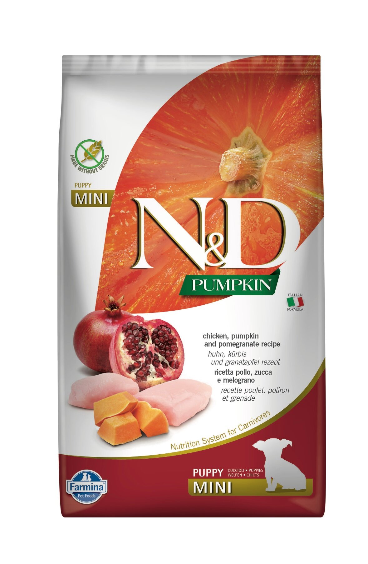 FARMINA DOG N&D GRAIN FREE PUMPKIN PUPPY MINI CHICKEN & POMEGRANATE беззерновой для щенков маленьких пород с курицей, гранатом и тыквой (0,8 кг)