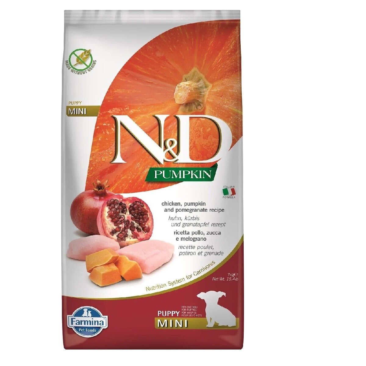 Купить Сухой корм Farmina N&D Pumpkin Chicken & Pomegranate Puppy Mini, для щенков маленьких пород, беззерновой, курица, гранат, тыква, 7 кг