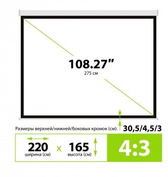 Экран Cactus MotoExpert CS-PSME-220x165-WT, 220х165 см, 4:3, настенно-потолочный белый