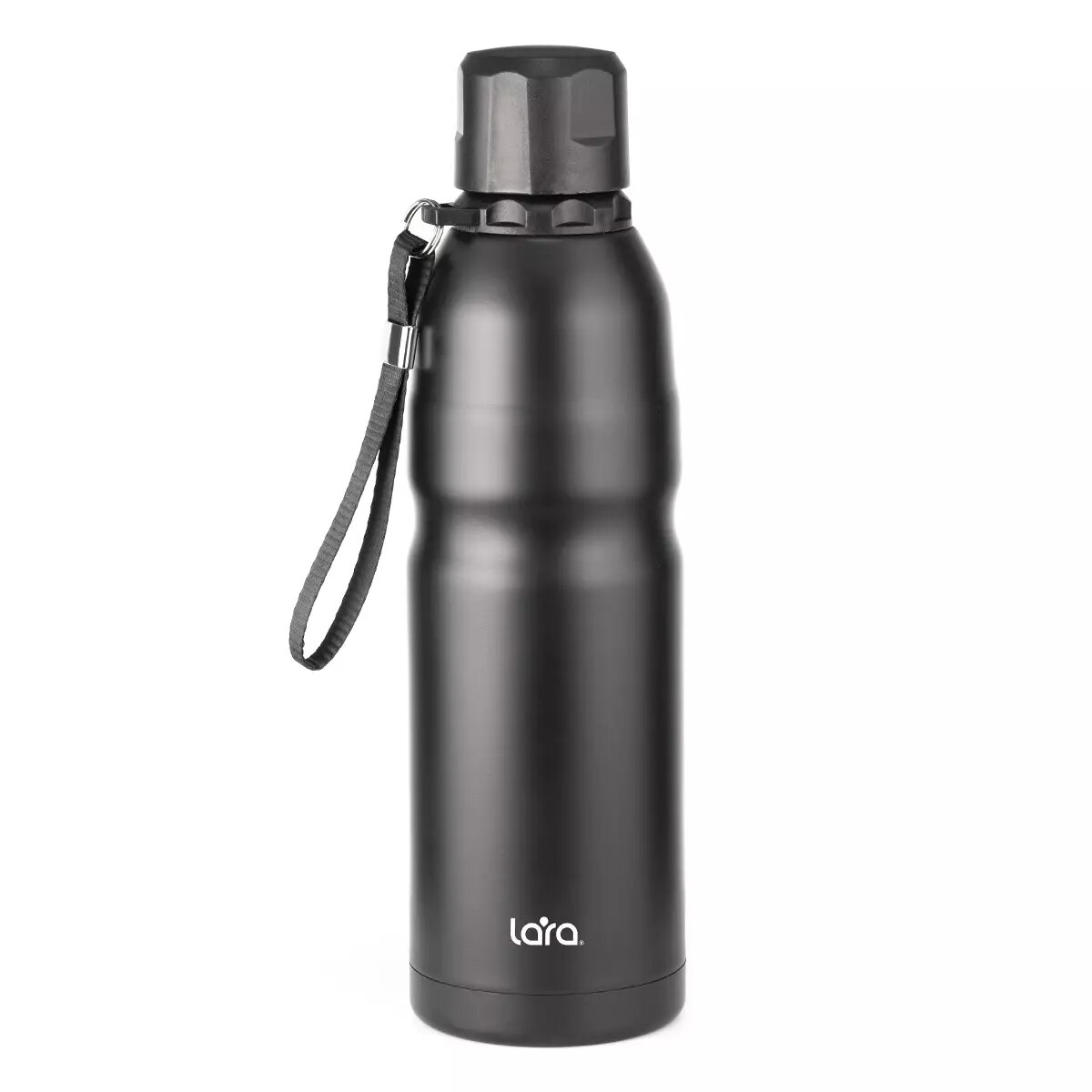 LR04-21 термос LARA (черный) 500мл, матовый, ремешок для переноски