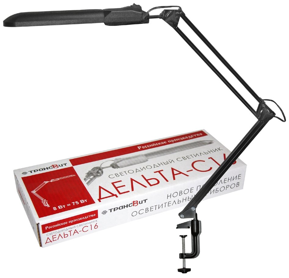 Светильник настольный Трансвит Дельта С16, лампа настольная для школьника, в офис, 8 Вт, черный