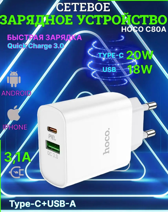 Hoco Сетевое зарядное устройство для телефонов и гаджетов C80A интересное:
