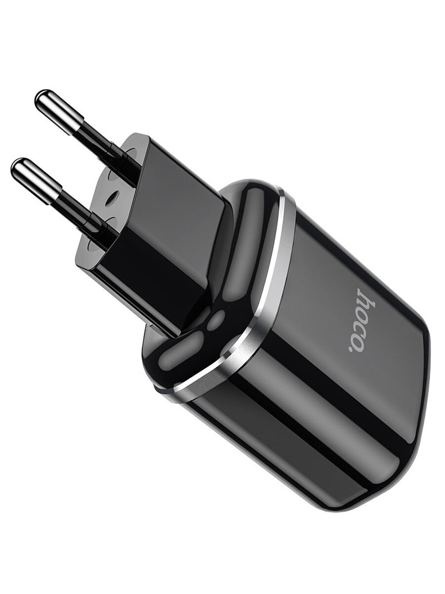 Сетевое зарядное устройство, 2 USB 2.4A 12W (N4), HOCO, Type-C, Умная зарядка, черный