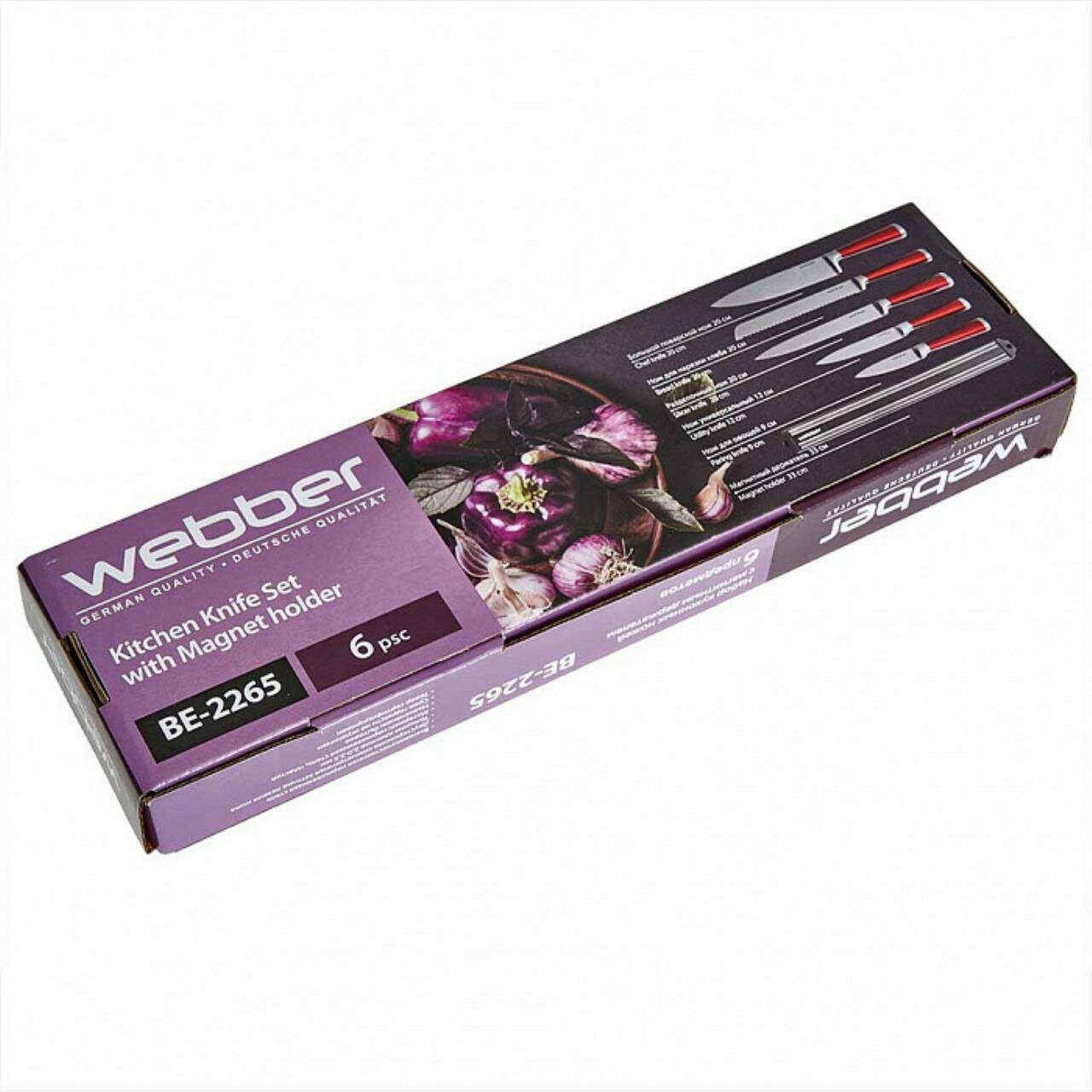 Набор ножей 6 предметов WEBBER ВЕ-2265, c магнитным держателем.