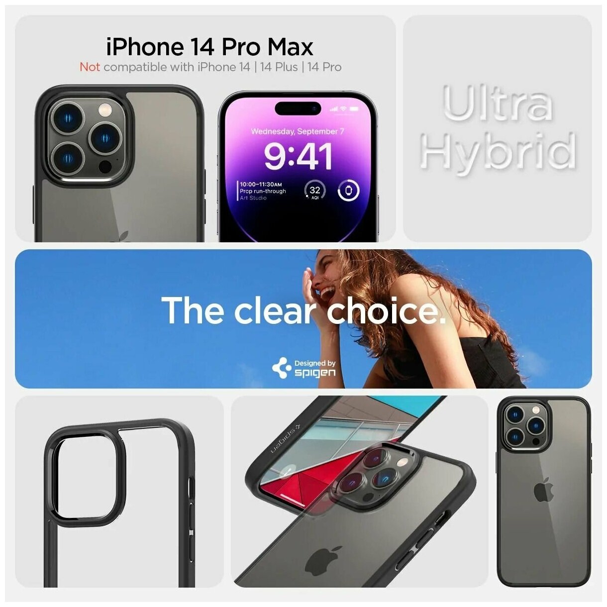 СохранитьЧехол Spigen Ultra Hybrid для iPhone 14 Pro Max, прозрачный + черный интересное: