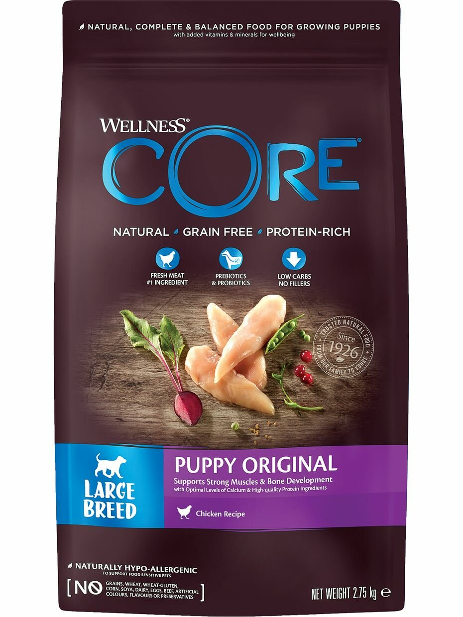 Купить Корм Wellness CORE Puppy Original для щенков крупных пород, с курицей, 2.75 кг