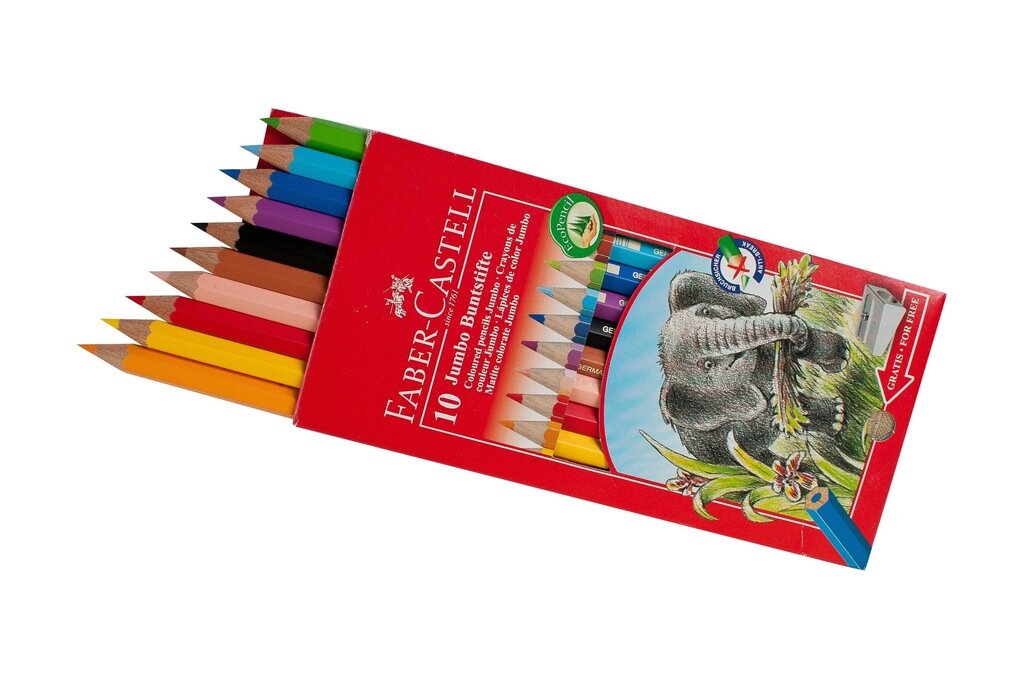 Faber-Castell Набор цветных карандашей "Jumbo", 10цв., утолщен., заточен., картон, с точилкой sela
