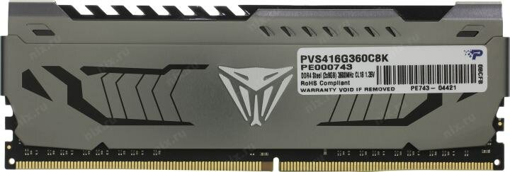 Модуль памяти DDR4 16GB (2*8GB) Patriot Memory PVS416G360C8K Viper Steel PC4-28800 3600MHz CL18 288-pin радиатор 1.35V RTL