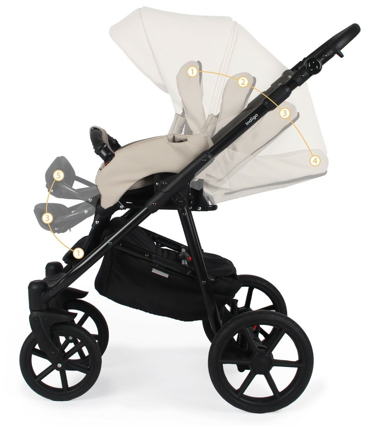 Коляска 2в1 Indigo BROCO Eco (Be 02 (бежевая кожа)) (Be 02 (бежевая кожа))