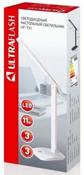 Ниже Вы можете прочитать отзывы на Светильник настольный UF-731 С01 белый (LED 11 Вт, 3 уровня яркости) Ultraflash, ознакомится с подробными характеристиками, посмотреть интересные обзоры и фотографии на Светильник настольный UF-731 С01 белый (LED 11 Вт, 3 уровня яркости) Ultraflash.