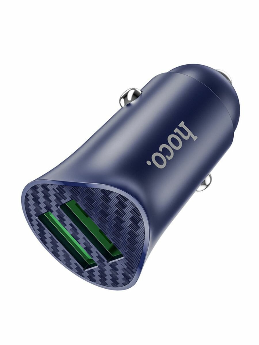 Автомобильное зарядное устройство (от прикуривателя) HOCO Z39 QC3.0, два порта USB, 18W синий, 6931474735034