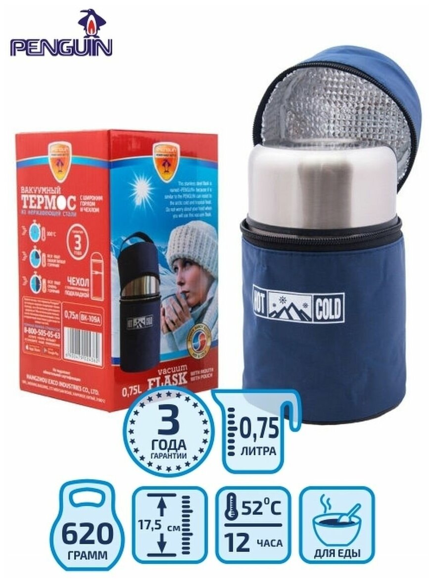 Penguin Вк-109а Термос с ш/г 0,75 л с теплоизолирующим чехлом и инд коробке .