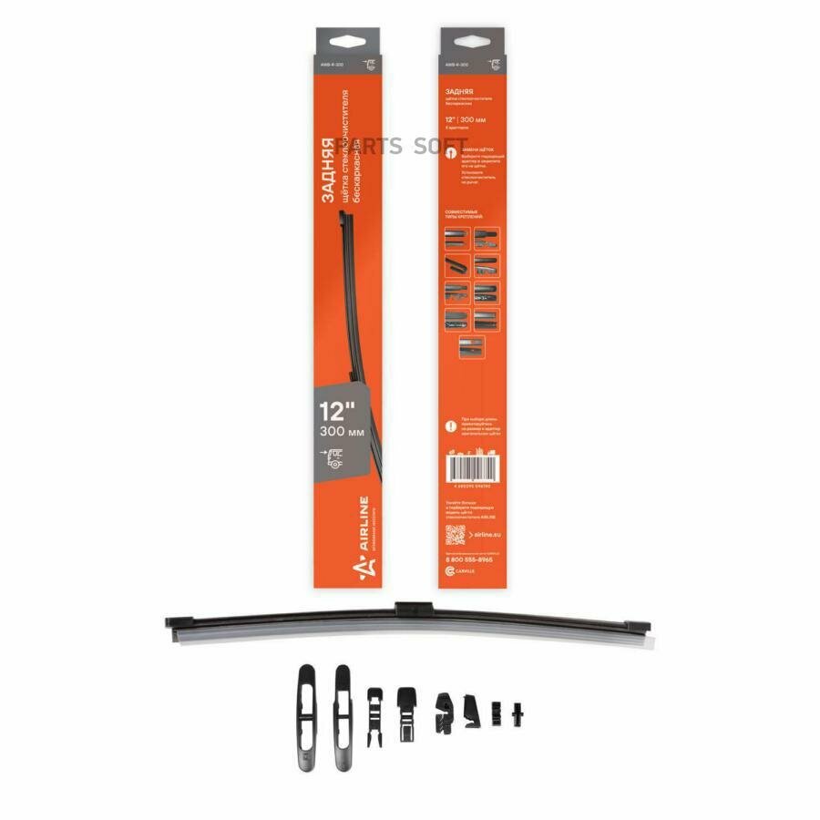 Щетка стеклоочистителя задняя бескаркас 300мм (12) 8 адаптеров (AWB-R-300) AIRLINE Артикул: awb-r-300