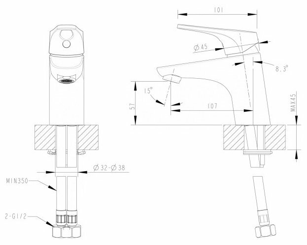 Смеситель для раковины (умывальника) Ledeme H41 L1041-2, рычажный