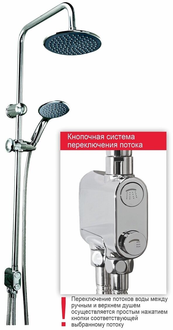 | Дополнительная информация | диаметр верхнего душа 200 мм, ручного душа - 110 мм; рабочее давление: 0,25 - 0,5 МПа |