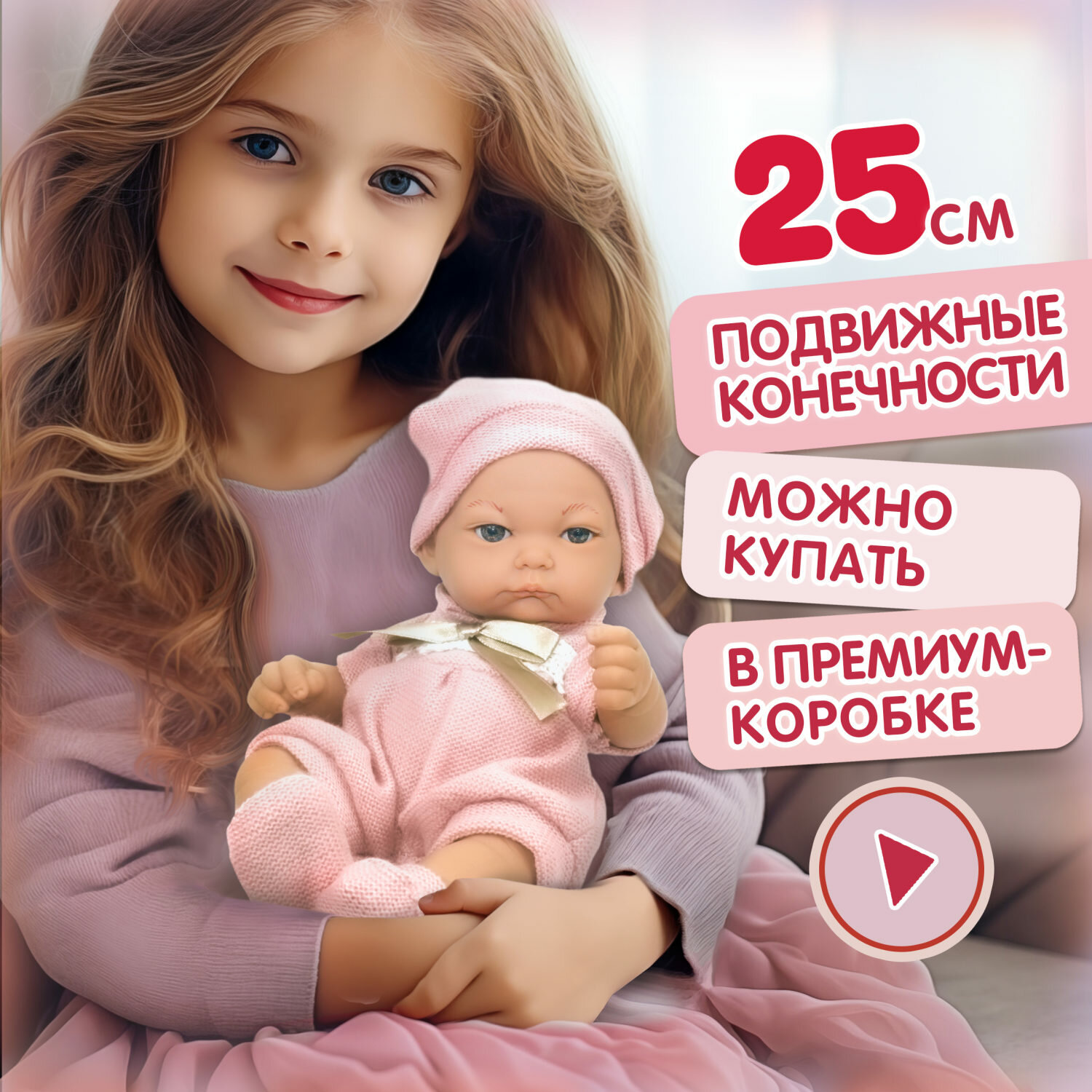 | Отзыв: | Прекрасный пупс, подарим ребенку на др, пока спрятан |