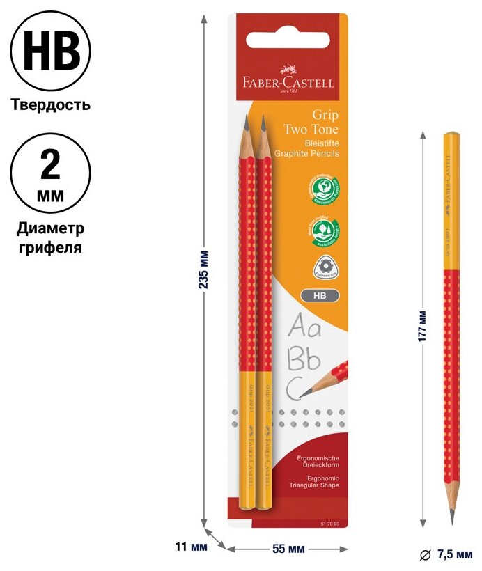 Карандаши чернографитные Faber-Castell Grip Two Tone", 2 шт, блистер 517093