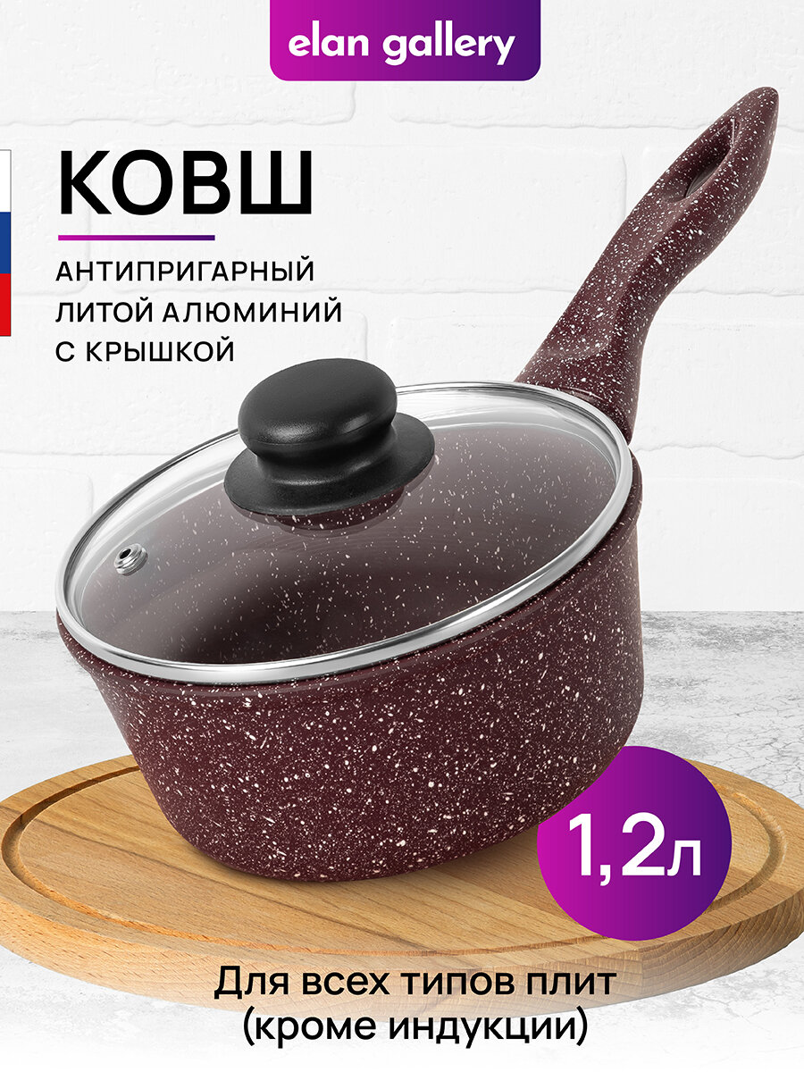 Ковш Elan Gallery Гармония вкуса Рубин 1,2л с антипригарным покрытием, с крышкой, с несъемной ручкой