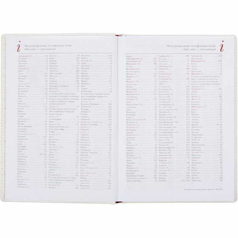 | Дополнительная информация | 14 страниц со справочной информацией, 18 страниц - телефонная книга; обложка подходит для тиснения; вес 396 г |