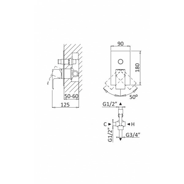 Встраиваемый смеситель для душа с переключателем CEZARES PORTA-VDIM-NOP