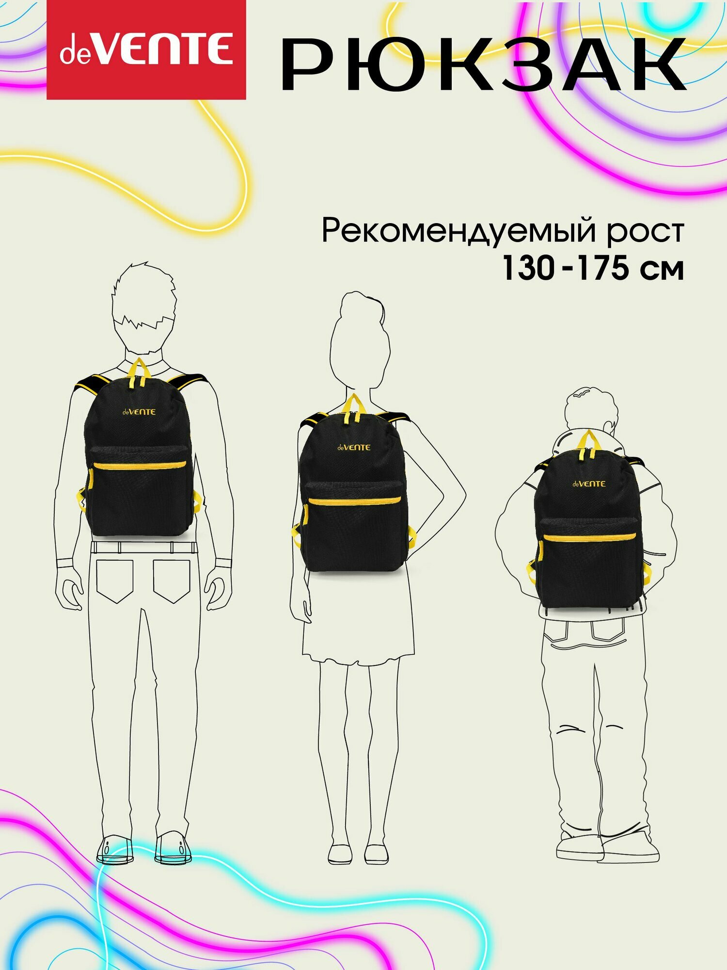 Ниже Вы можете прочитать отзывы на Рюкзак подростковый deVENTE. Black 40*29*17 см 1отд. перед.карм. черный с желтым 7032381, ознакомится с подробными характеристиками, посмотреть интересные обзоры и фотографии на Рюкзак подростковый deVENTE. Black 40*29*17 см 1отд. перед.карм. черный с желтым 7032381.