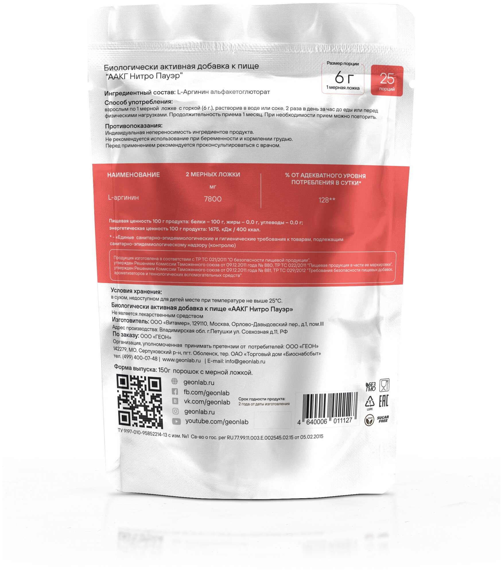 Аминокислотный комплекс GEON AAKG Nitro Power, нейтральный, 150 гр. интересное: