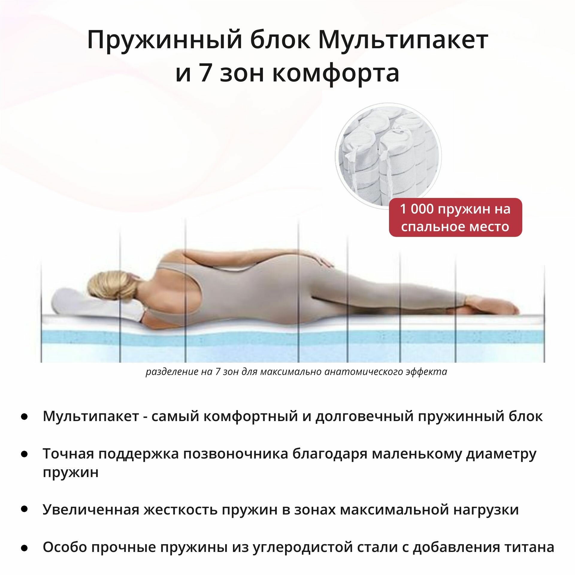 Матрас 140х190 SOUL Fines, пружинный, ортопедический, зональный блок