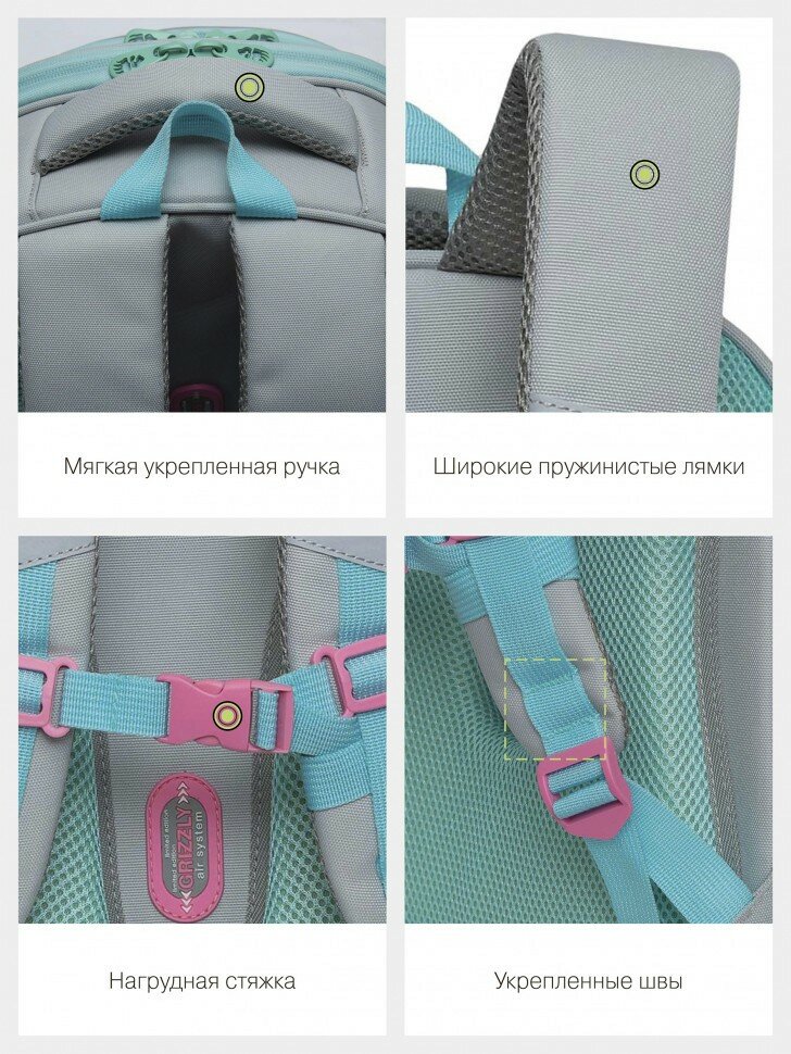 Ранец для девочек Grizzly анатомическая спинка, c брелоком, для девочек, "Magic cat", 36х28х20 см
