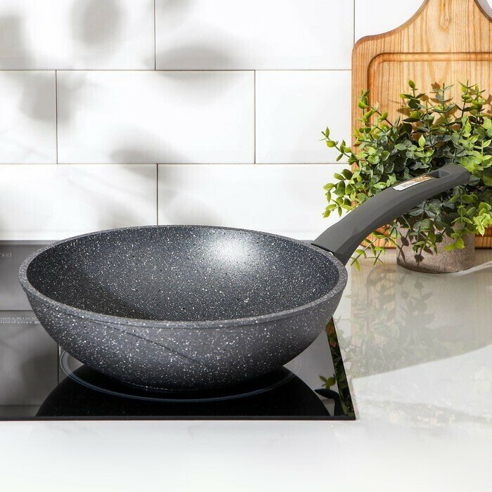 Сковорода-ВОК Гранит, d 28 см, пластиковая ручка, антипригарное покрытие, цвет серый интересное: