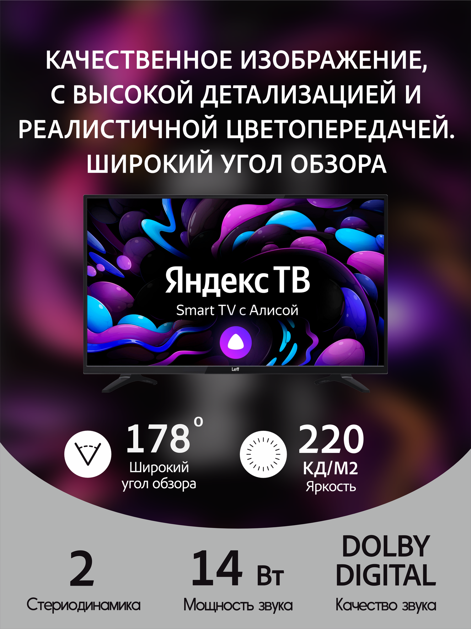 32" Телевизор Leff 32H550T LED на платформе Яндекс.ТВ, черный