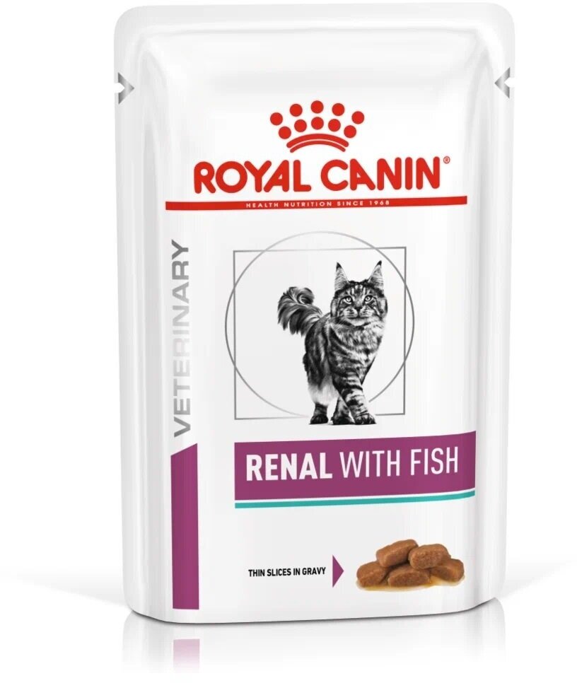 Влажный корм для кошек Royal Canin Renal whit fish, при проблемах с почками, c рыбой, 48 шт. х 85 г (кусочки в соусе)