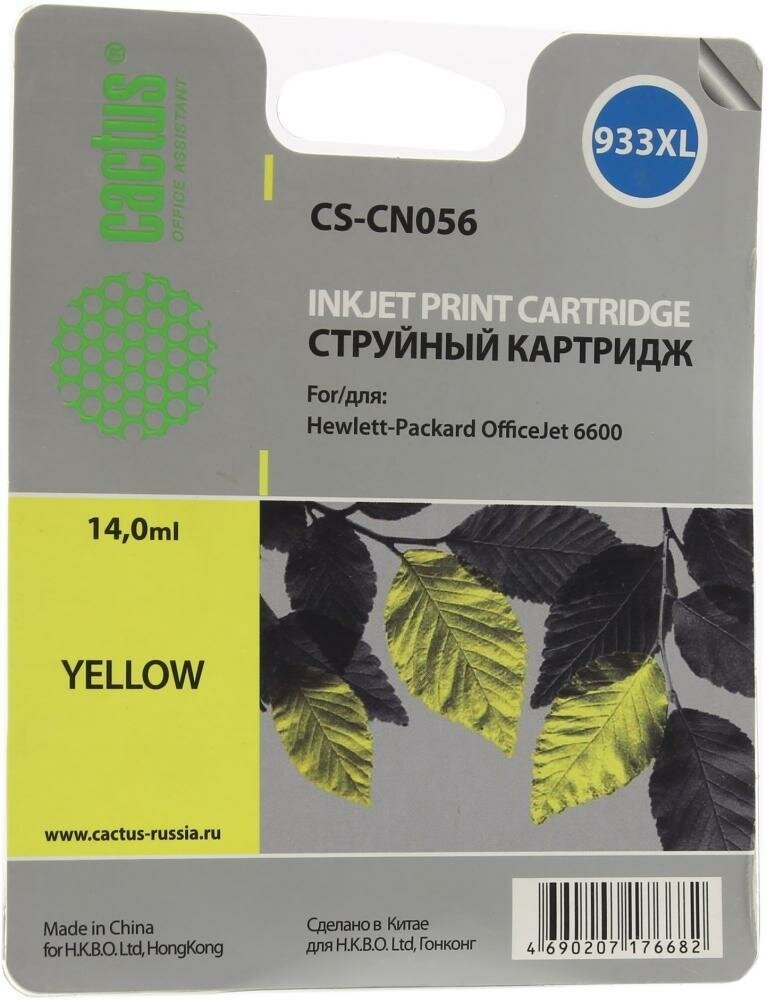 Картридж струйный Cactus CS-CN056 933xl желтый (14мл) для HP DJ 6600 CS-CN056 .