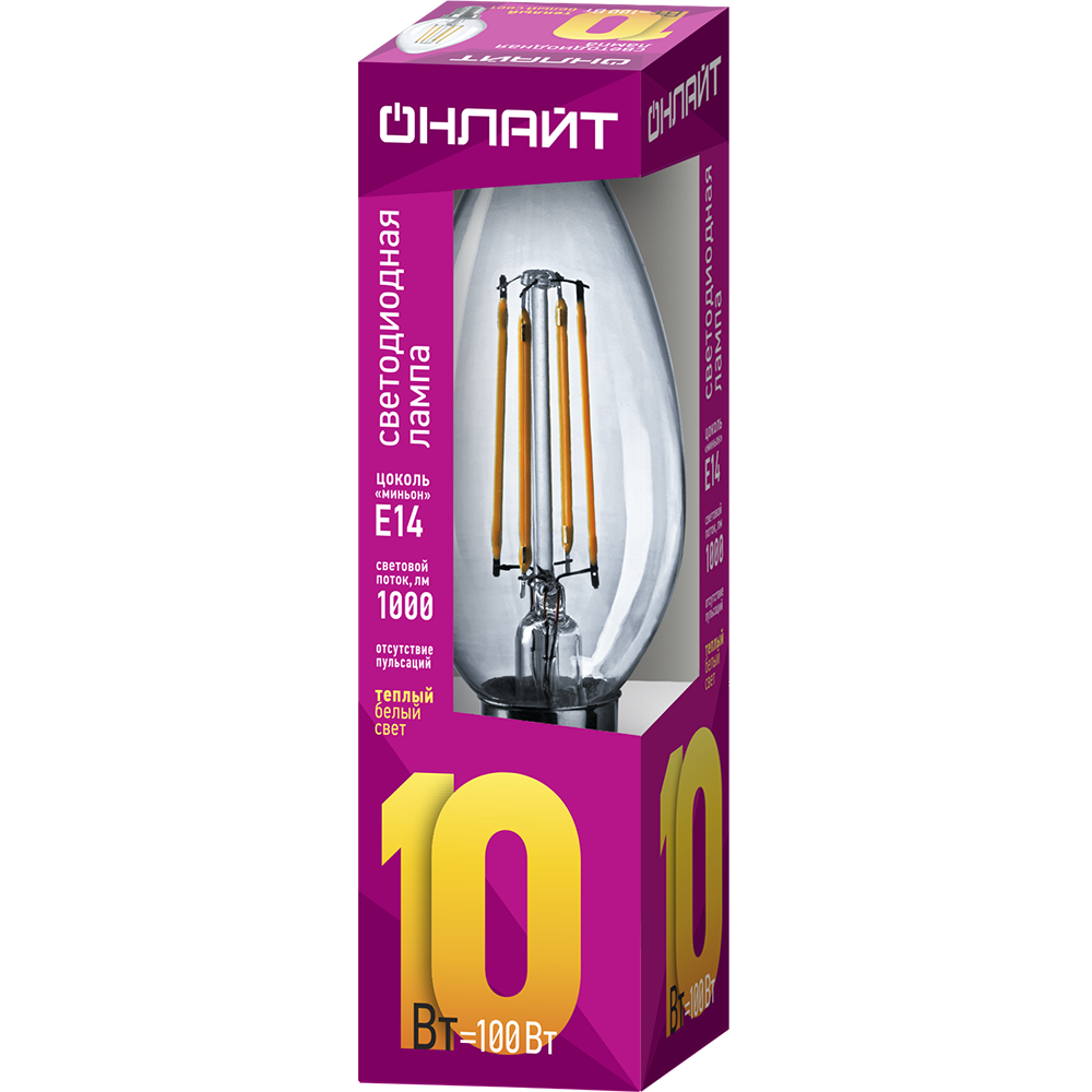 Лампа светодиодная филаментная онлайт 80 894, 10 Вт, свеча Е14, теплый свет 2700К, 1 шт.