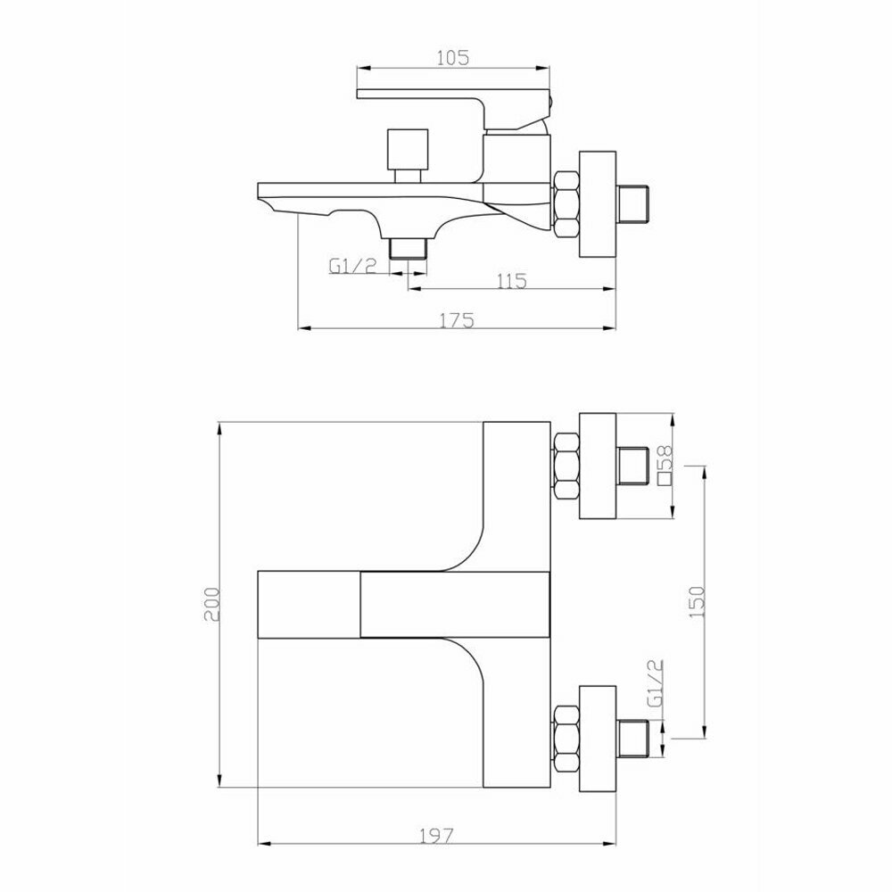 Смеситель для ванны и душа настенный/белый